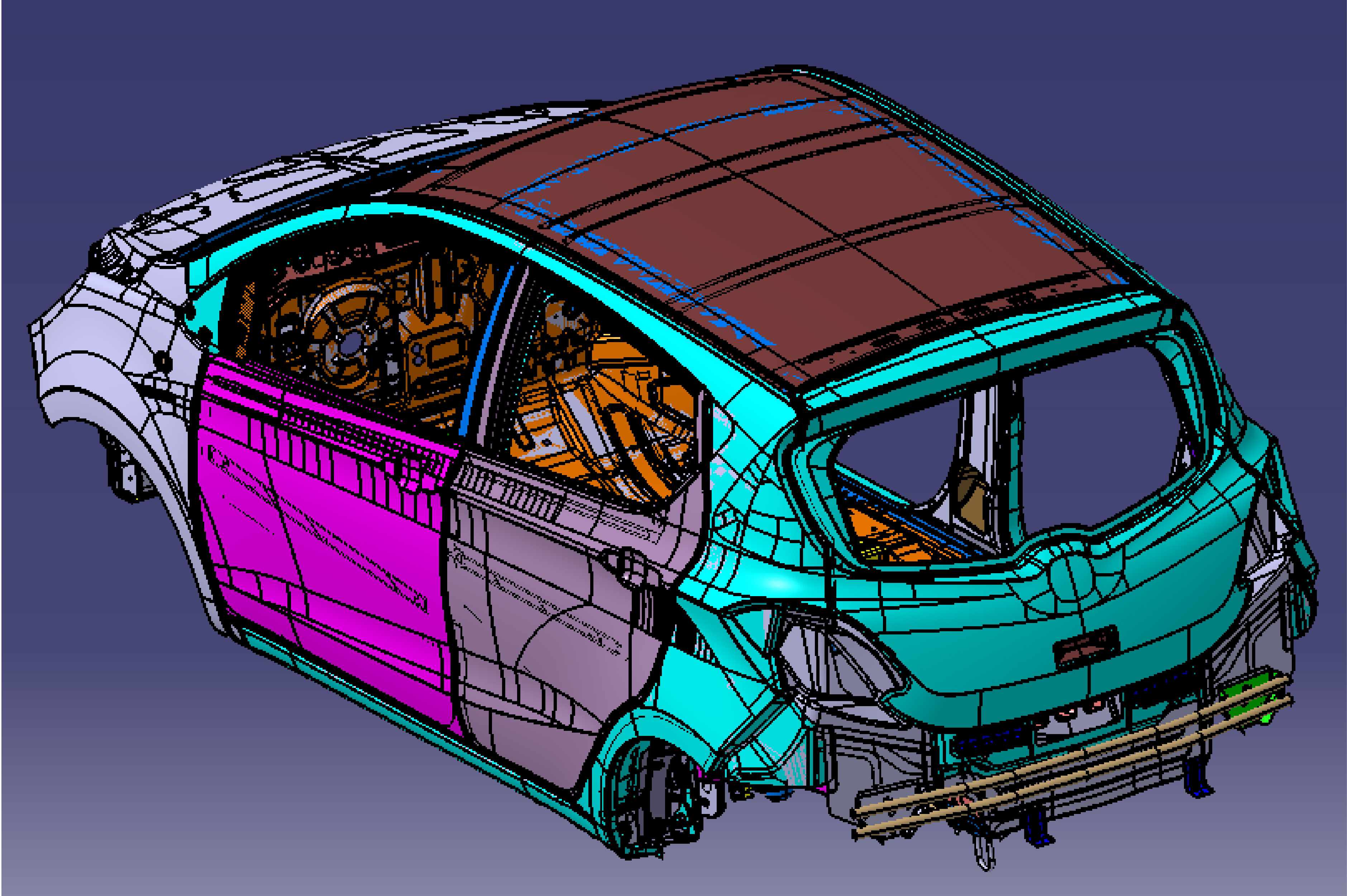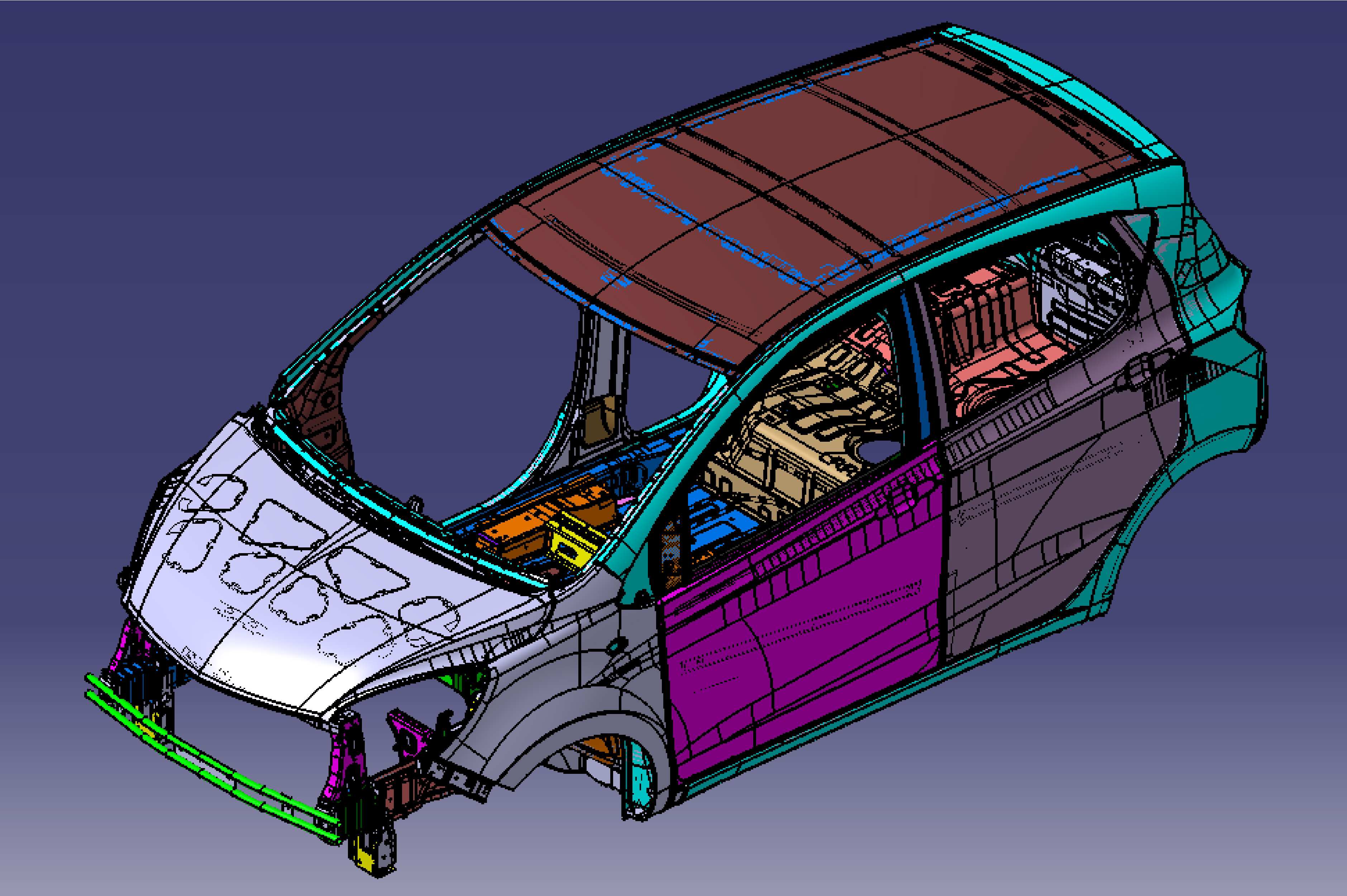 包括整车车身开发、升级改型、驾驶室设计等设计开发,通过效果图、油泥模型、数据采集、曲面光顺、结构设计、样车试装、道路试验、模具验收一系列流程,提供汽车车身开发的全套技术服务。